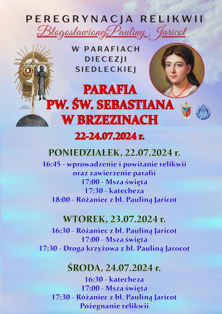 22-24.07.2024 - PEREGRYNACJA RELIKWII BŁ. PAULINY JARICOT